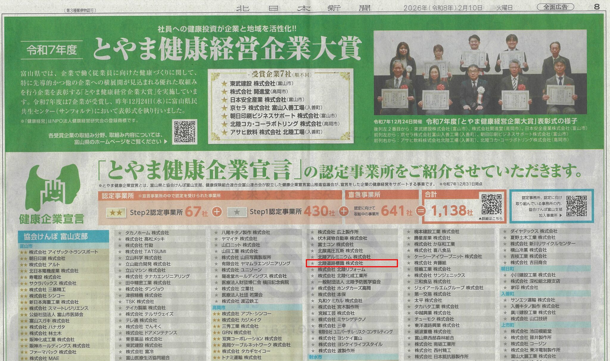 北日本新聞(同日) 8面